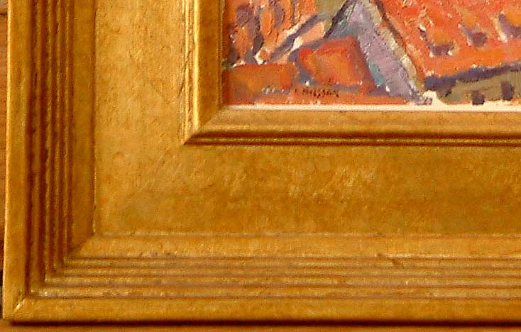 This small gem like oil painting on panel was painted directly from nature in Prague by Leif Nilsson during a painting trip to the Czech Republic in the spring of 1999. The panel measures 8 inches by 10 inches unframed and is 13 inches by 15 inches in the handmade metal leafed finished corner wooden frame. The area where the composition was created is directly below the Hrad, or Castle on the eastern side of the River Vltava, where extensive gardens are terraced up along the hill leading to the Castle. Please click on the thumbnail image above to view more detailed images of this painting. To see more paintings of the Czech Republic by Leif Nilsson click here.