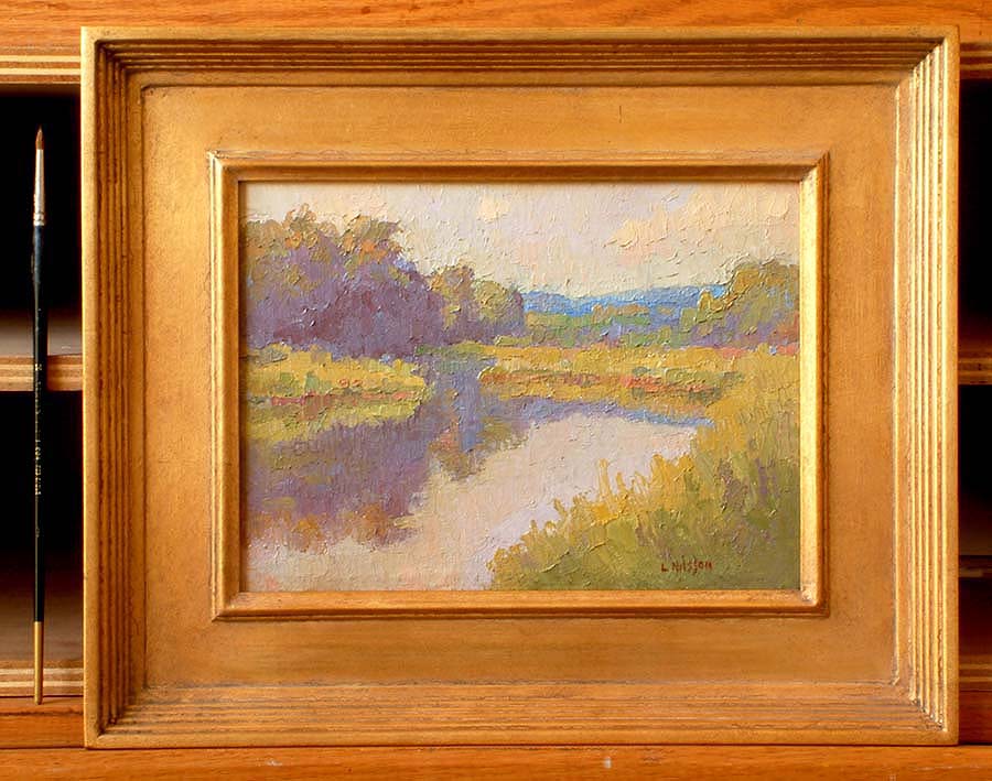 pallett knife technique is perfect for this marsh subject. CAT# 2604 Chester Cove - late summer morning oil 9 x 12 inches Leif Nilsson summer 2003 © Sold |